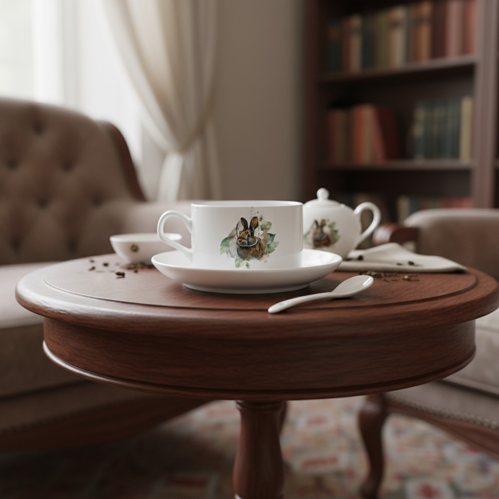 Pocillo Tintero de Cerámica con Plato y Cuchara – Conejo de Páramo